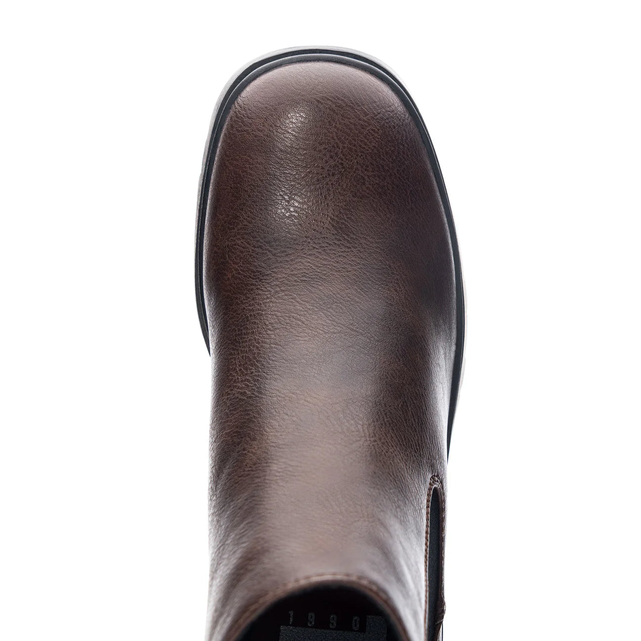 Bold meets beautiful with the Origin chunky heel boot by Dirty Laundry. With elastic side panels and a pull on loop back and inside zip, these block heel boots are perfect paired with jeans or joggers.