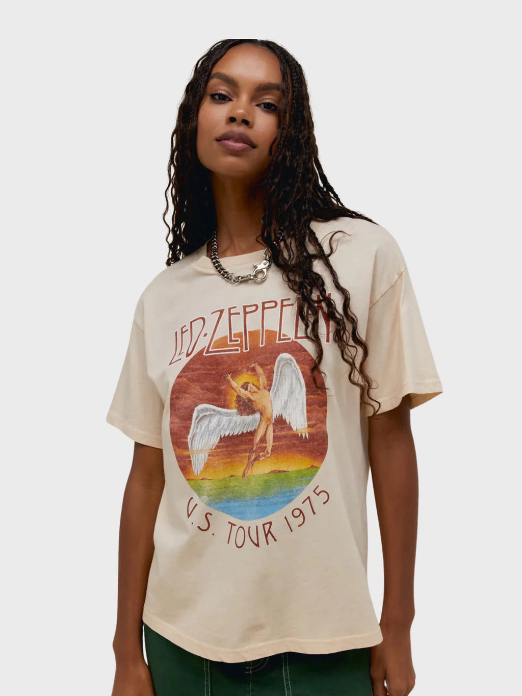 A Led Zeppelin tee packed with an authentic ease and edge courtesy of the iconic 1975 Led Zep tour graphic that you’ve seen, worn and loved again and again. We know you’ve been waiting for this to be re-released. Now placed on a boyfriend tee that will fit right into your rotation.