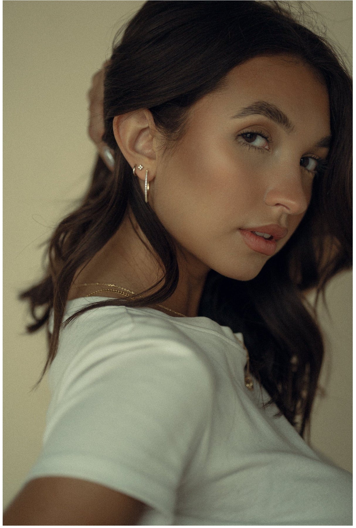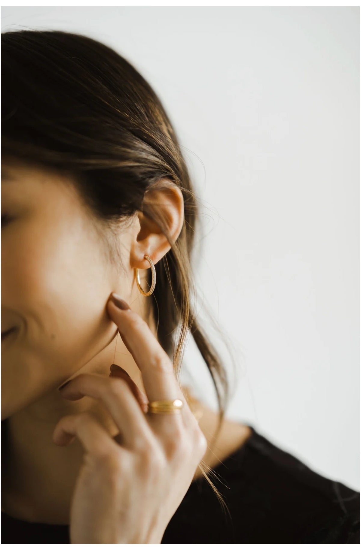 Sparkly and fun, our Ethereal CZ Hoop Earrings are add a bit of glam to your everyday looks. Available in both gold and silver, these hoops are sure to become a quick favourite in your jewelry collection.