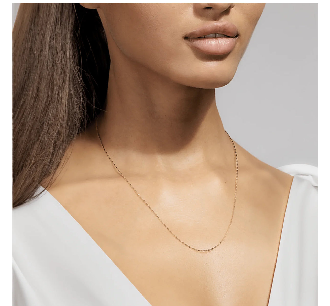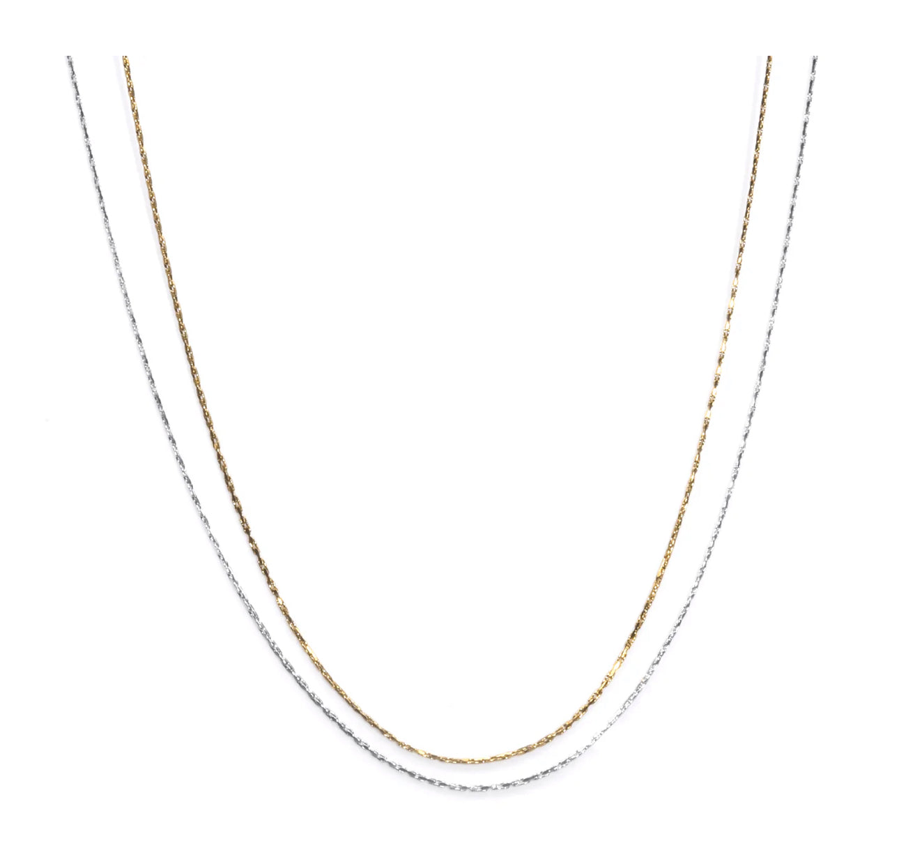 Our Filo di Seta necklace is a classic, through and through. A delicately designed, dainty anchor chain emboldened with stainless steel for a perfect mix of dainty strength for every day. RH plated, diamond cut edges makes Filo di Seta the perfect addition to your jewelry collection.