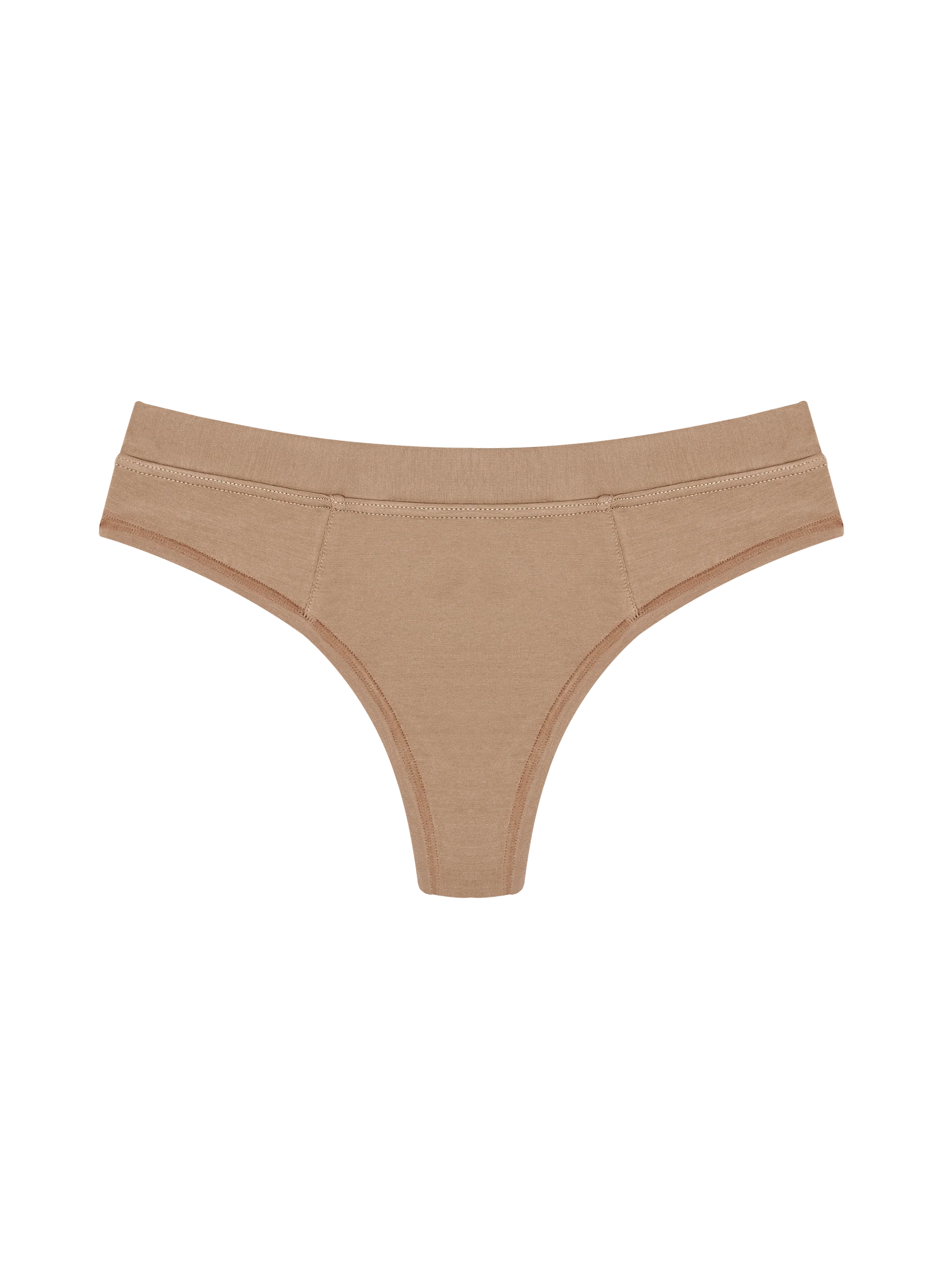 The comfiest thong in the world? Our original mid-rise Thong took two years to perfect and is known to convert even the most renowned thong haters. Designed with a cute visible front panel and a soft structure that stays put, it features a smooth cuffed waistband that prevents digging in and rolling down.