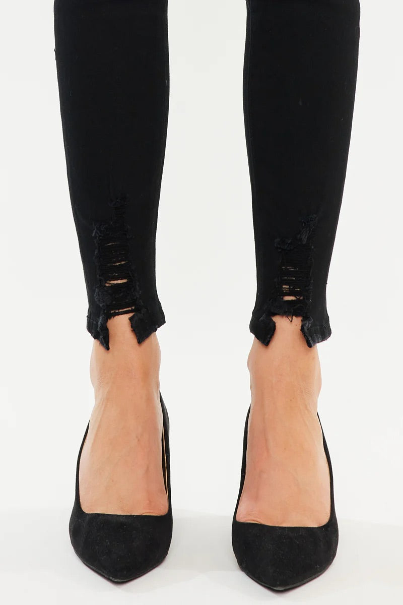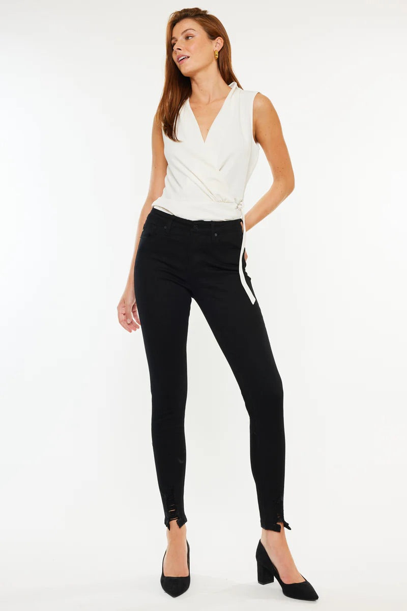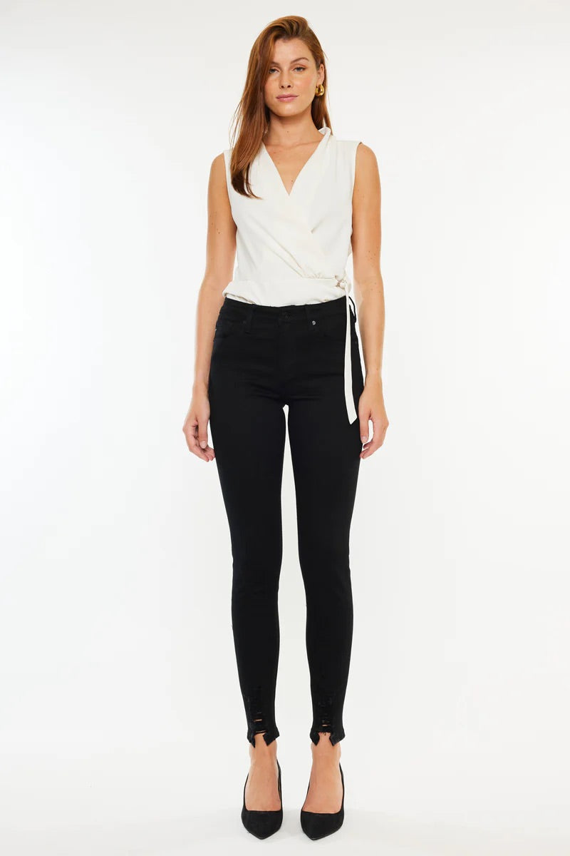 Our Anya High Rise Super Skinny comes with distressed hem detail and a fitted silhouette. This style comes in a super soft, stretchable fabric, that won't bag out with each wear. Comfortable enough for you to move, yet maintains its shape for a perfect fit every time.
