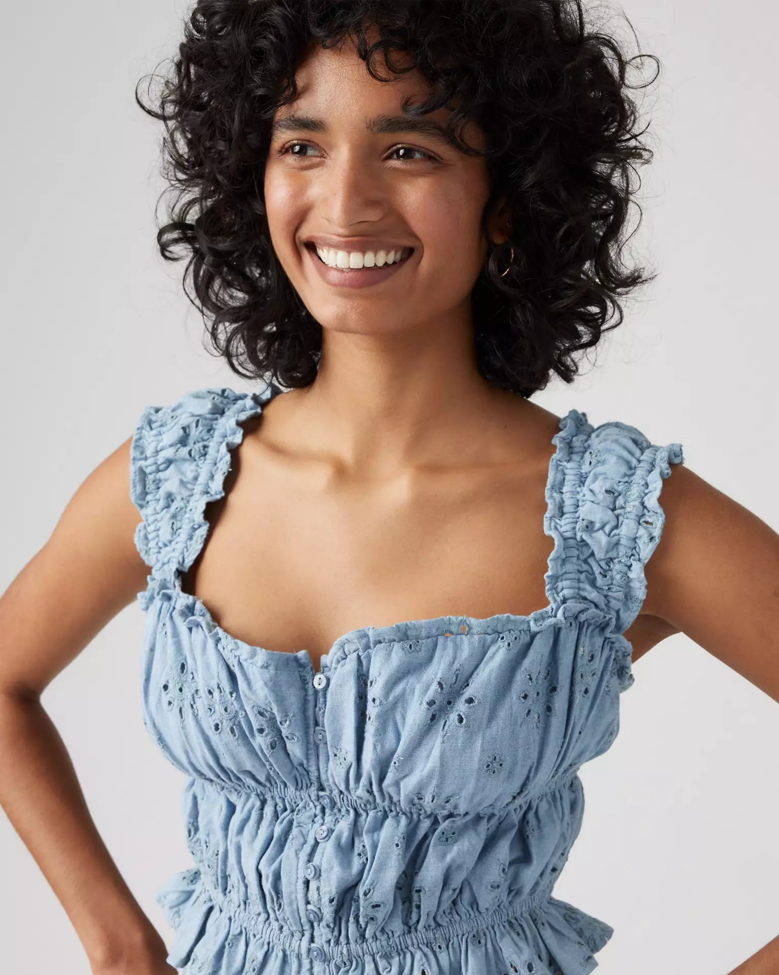 A sweet top that feels like summer. Our Amaya Blouse features a ruched design, bra-friendly straps and a button-up front.
