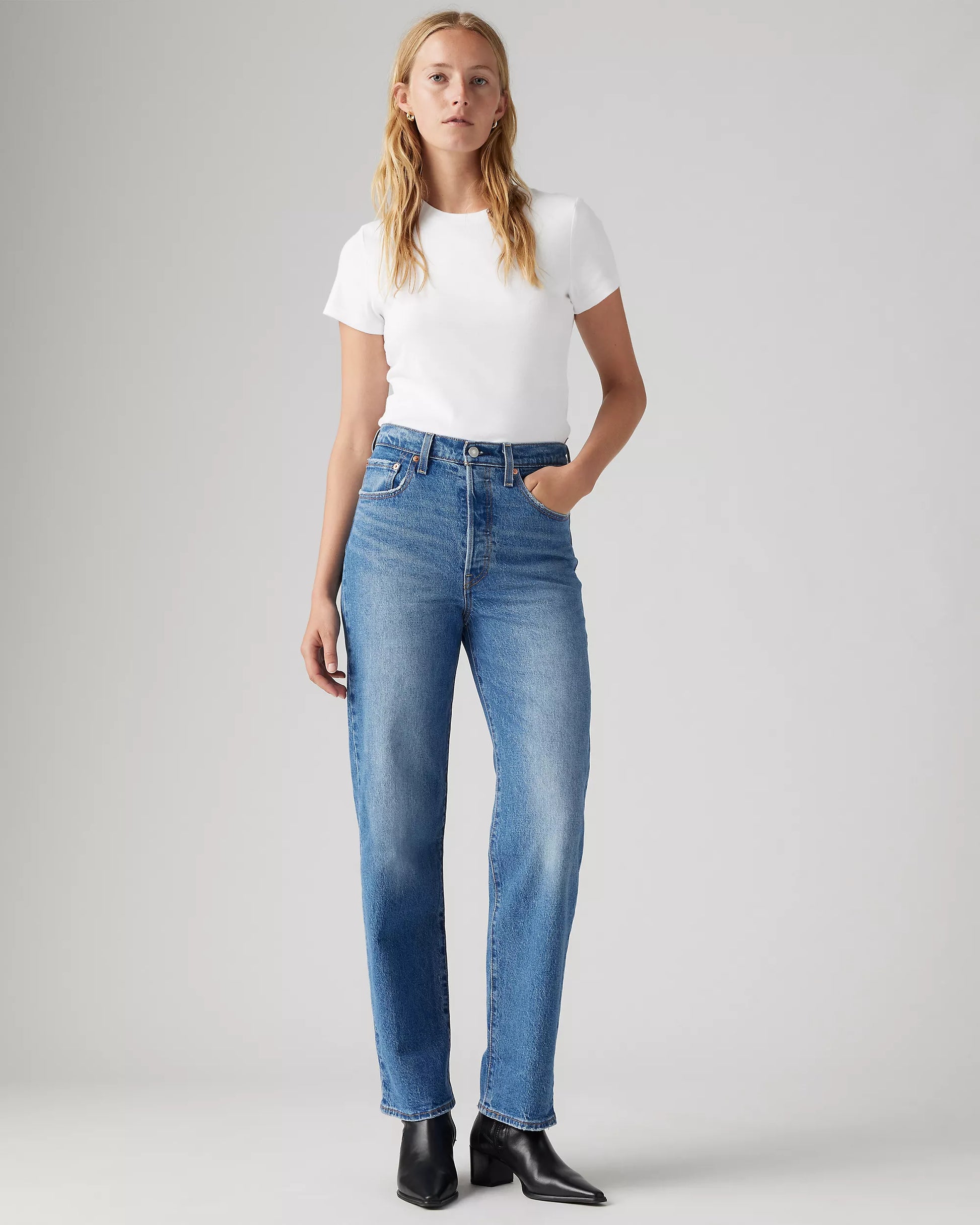 Our highest high rise yet. Our Ribcage Straight jeans—with their soaring 14-inch rise—have become a waist-defining, leg-lengthening obsession. This fit will show off your figure and make you feel as amazing as you look.