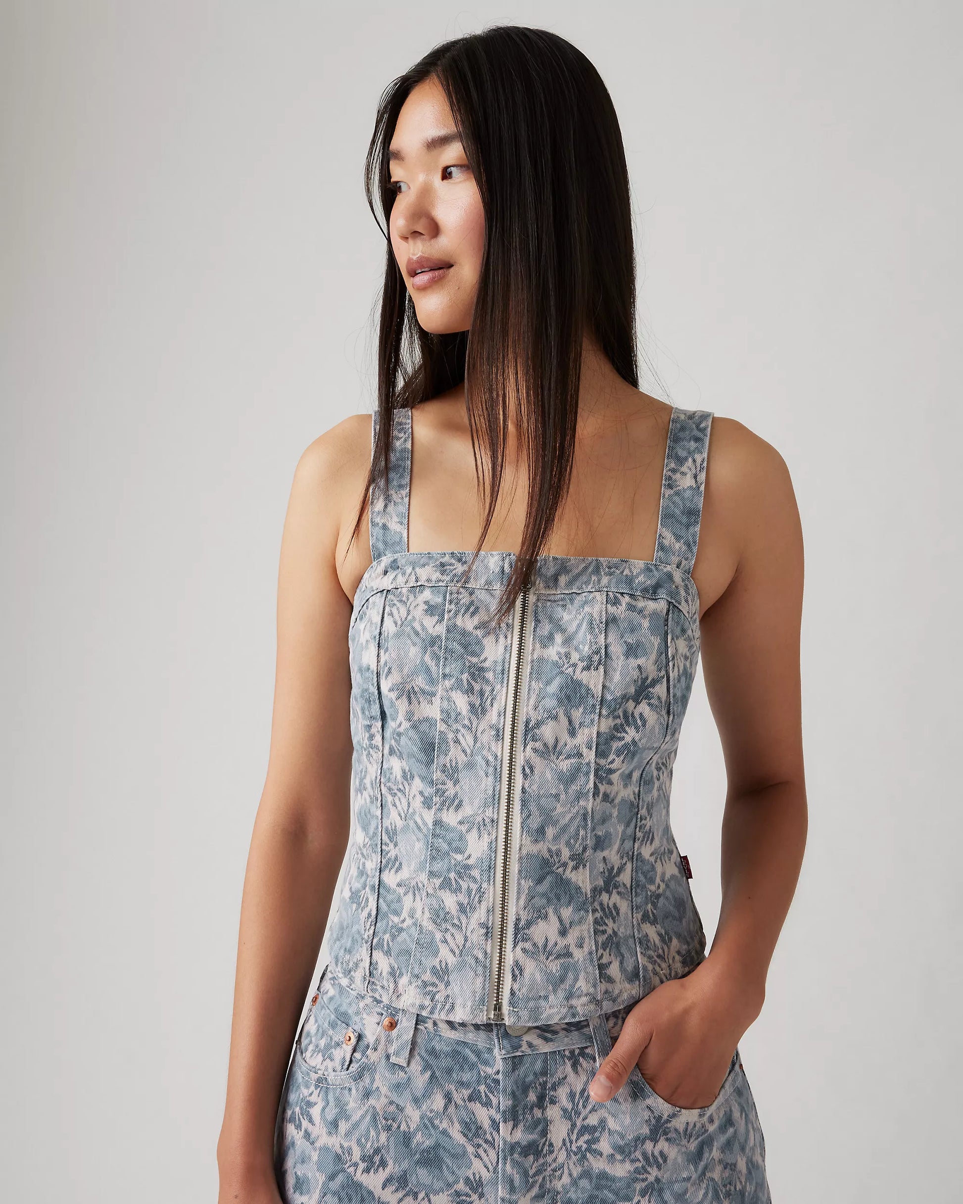 It's the top you'll be wearing all season long. This Sculpted Bustier is ultra-flattering thanks to its corset-inspired design, zip-up front and smocked/stretchy back.