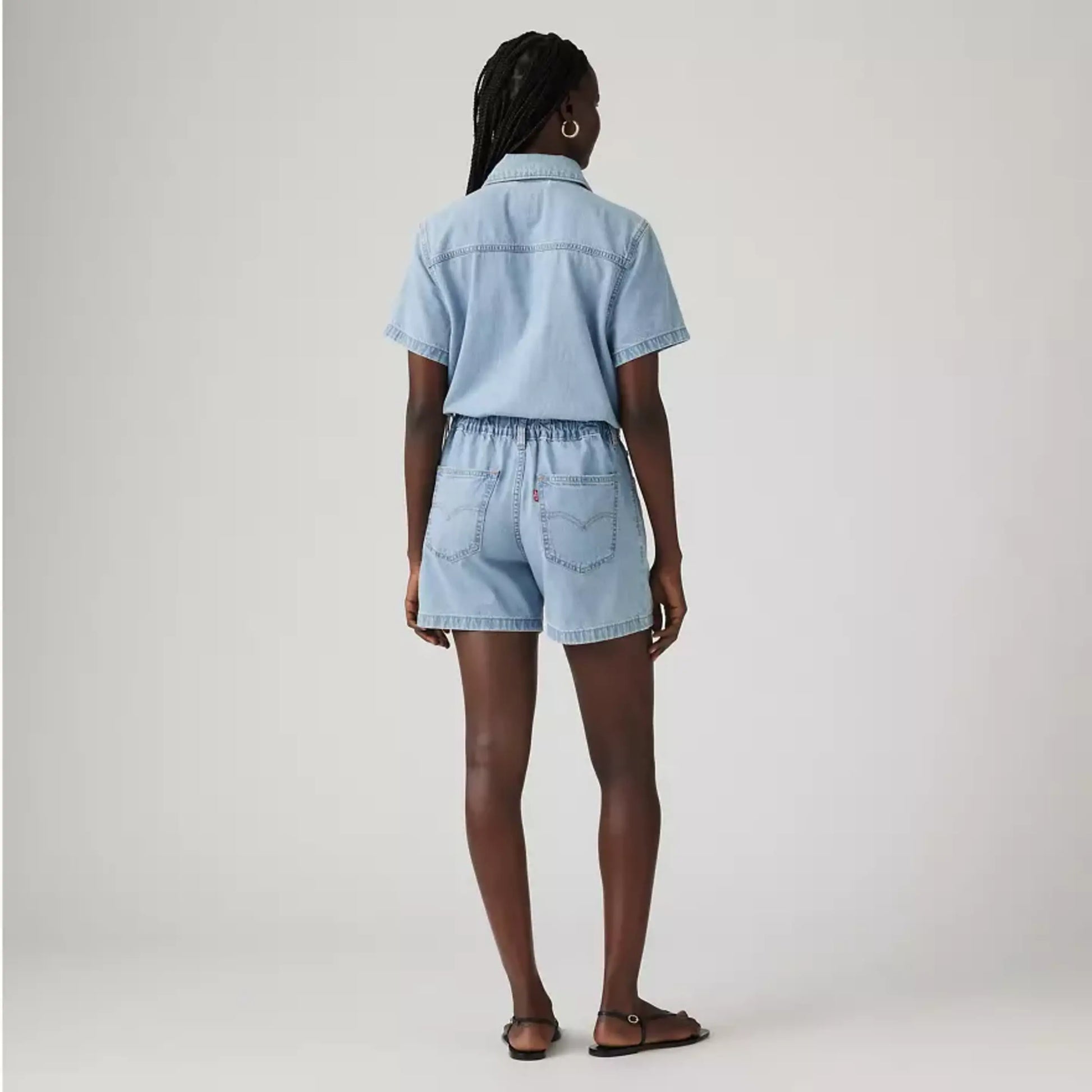 Keep things comfortable and cool with this Denim Romper. Featuring a classic button-up front, pockets and a cinched waist for added detail