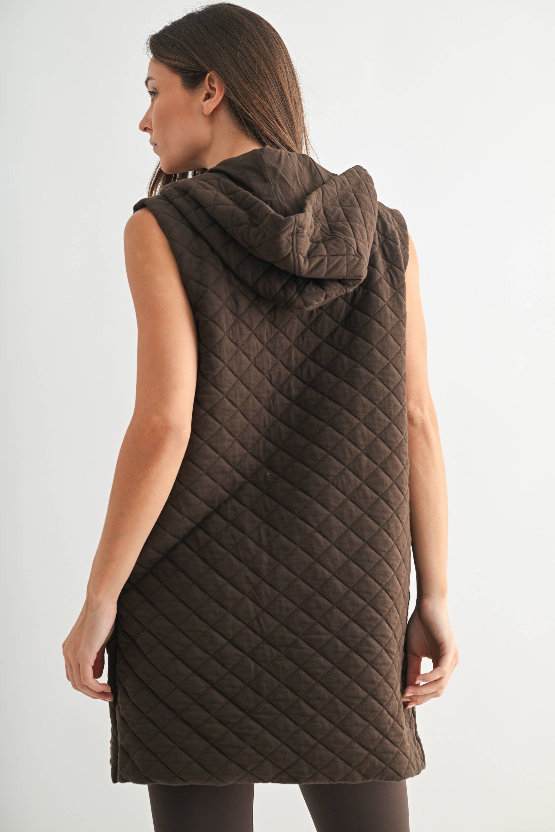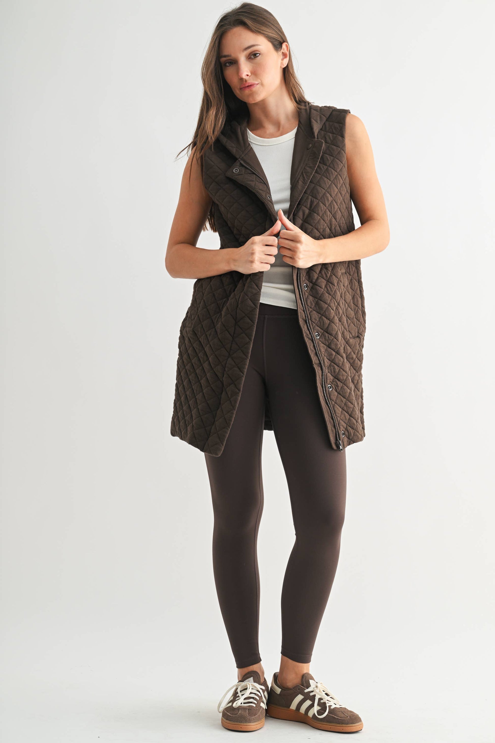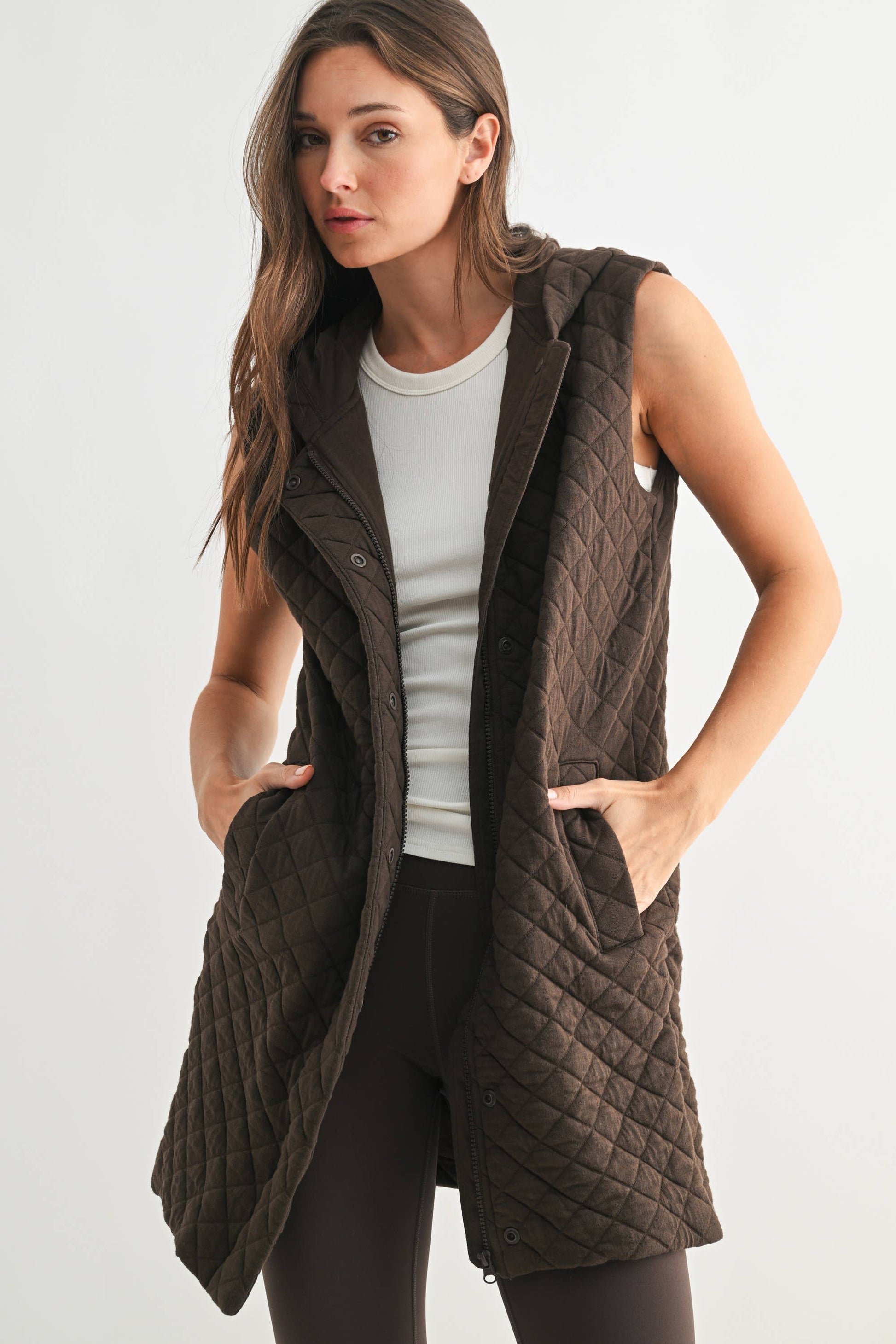 Discover ultimate comfort and style with our insulated quilted jersey vest. Embrace the soft, stretchy warmth of the longline vest, complete with tailored welt pockets and hidden snap placket at the hip for enhanced movement. Featuring a full front zip and lightweight, fully lined jersey for your perfect ensemble.
