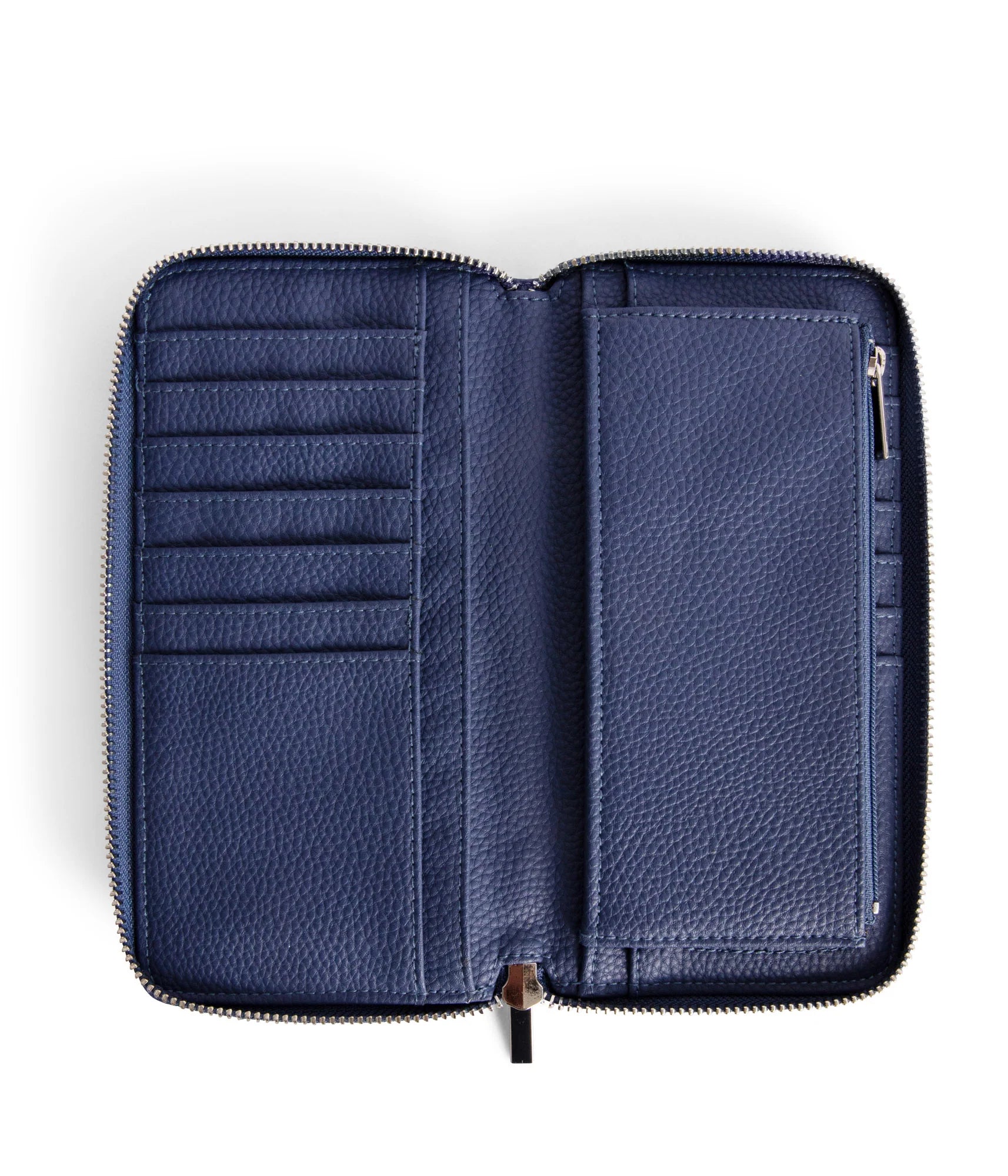 - Interior: 14 card slots, 2 bill compartments, zipper coin pocket.