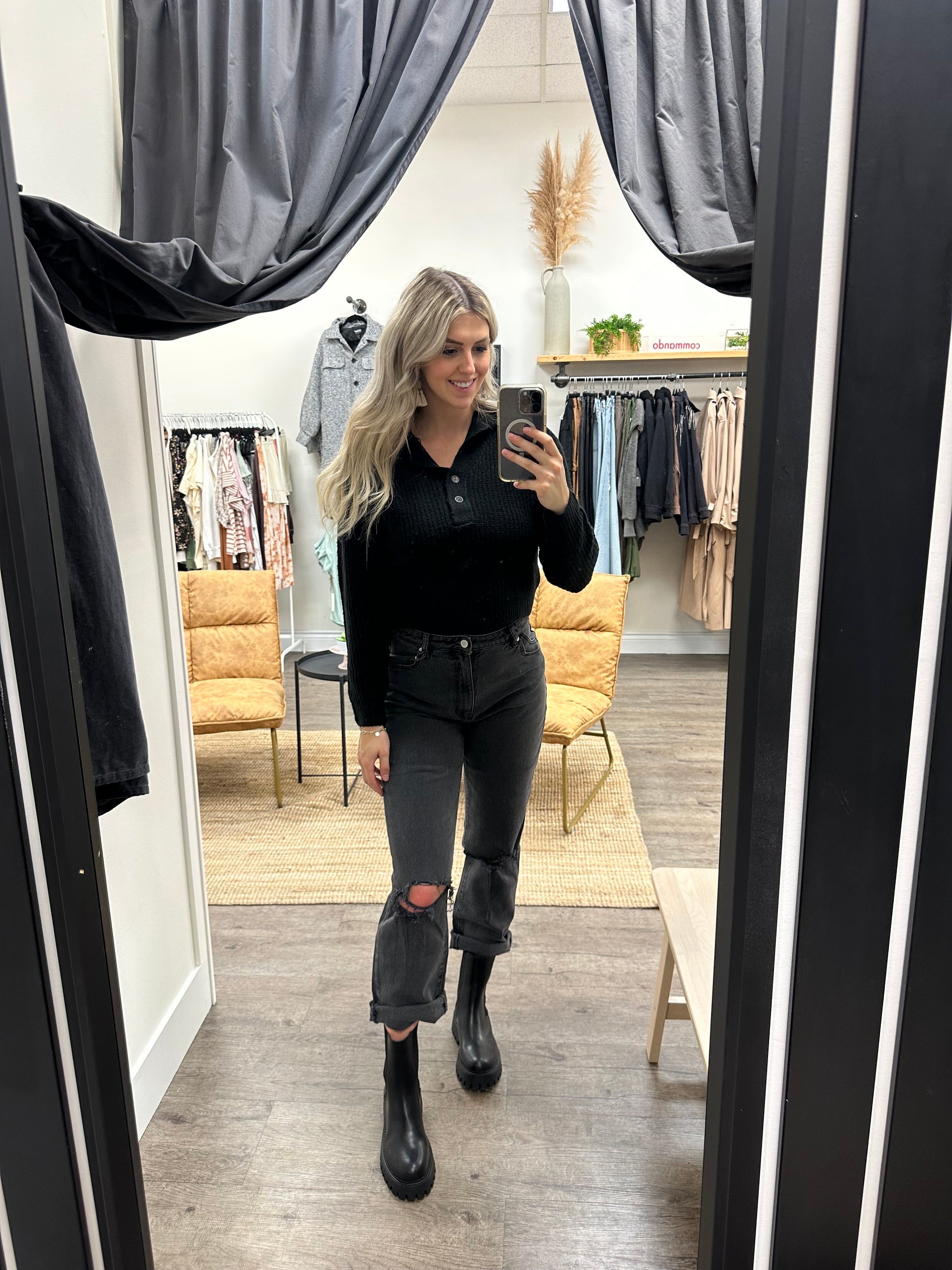 Stay cozy in style this season with our Manon Long Sleeve Troyer Neck Pullover. It features a ribbed texture, a double button closure, and a classic collared neck for a look that's both comfortable and fashionable.