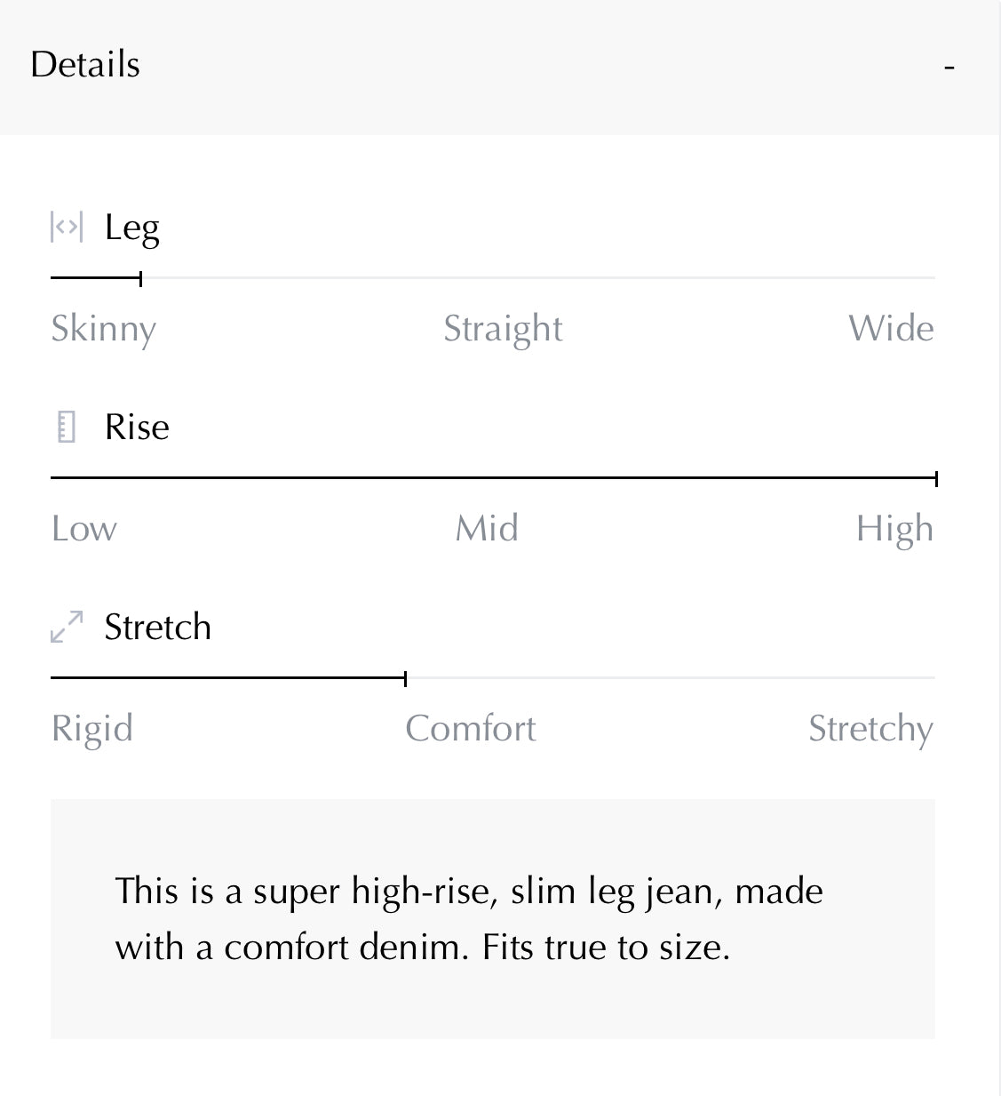 This is a super high-rise, slim leg jean, made with a comfort denim. Fits true to size. Check last picture for details