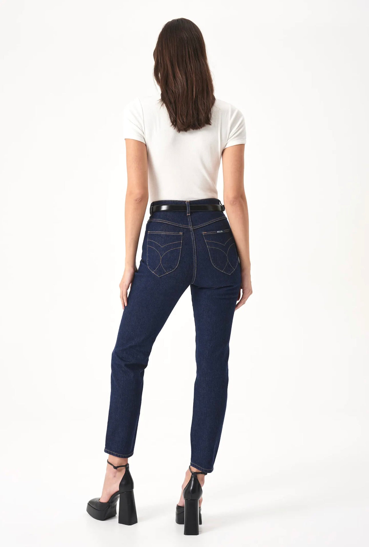 - Vintage inspired super high rise, slim fit with tapered cigarette leg