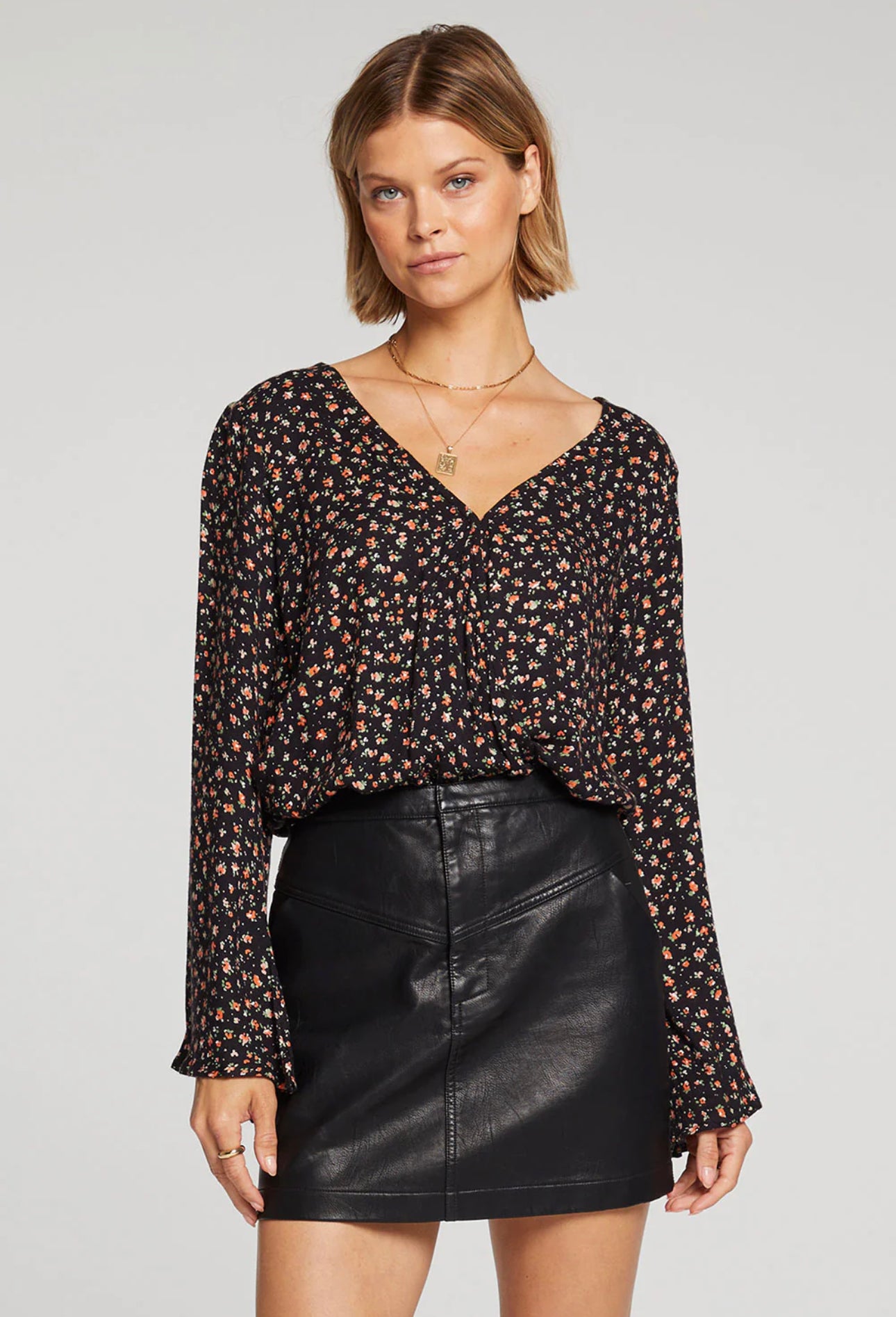 Our long sleeve Morgen Top bodysuit features a deep V-neck.