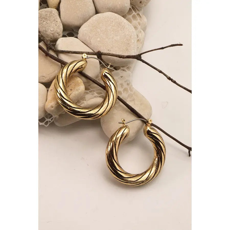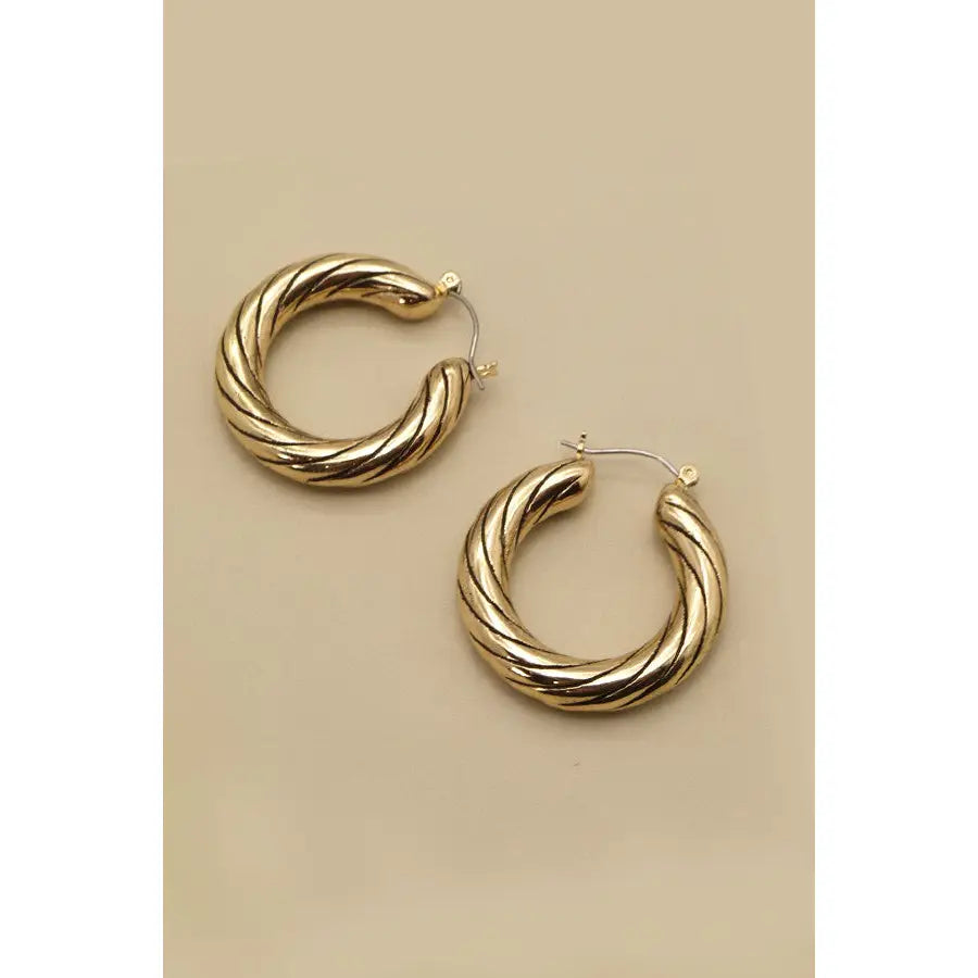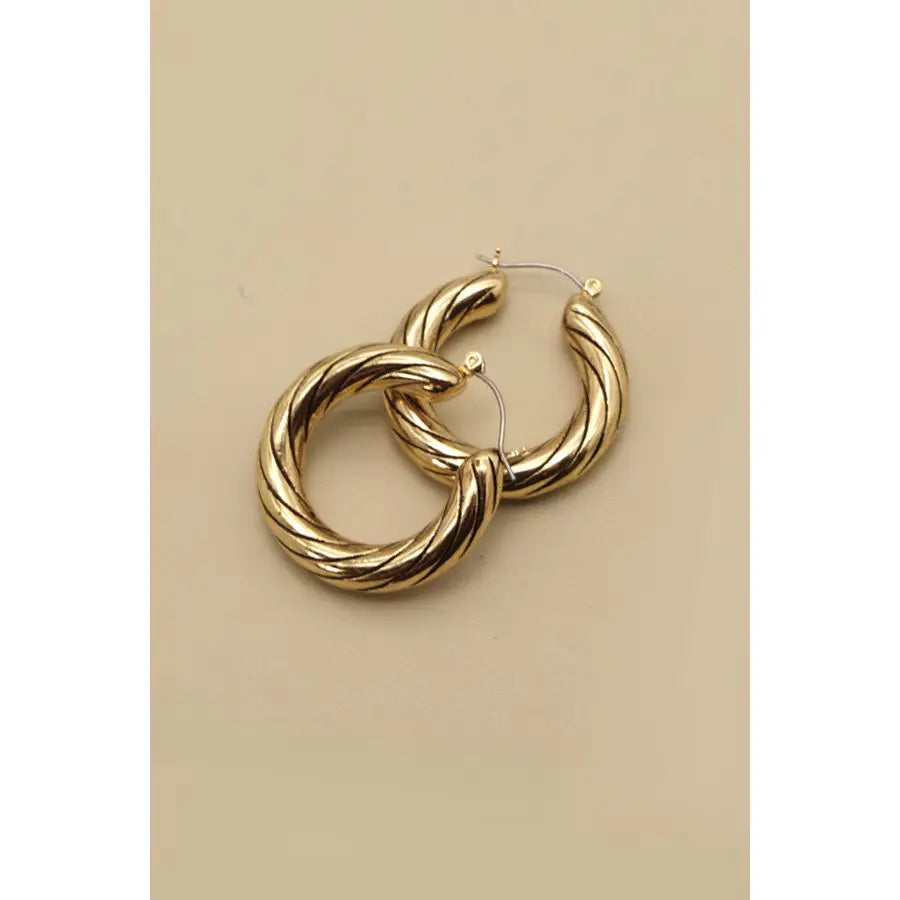 Mixed and matched metals meet an easy, everyday classic antique gold hinged hoop earring. DIMENSION length: 1.25" width: 1.25" earring back: Hinged metal finish: Gold Plating product: Lead & Nickel Compliant anti-tarnish: Double E-coating
