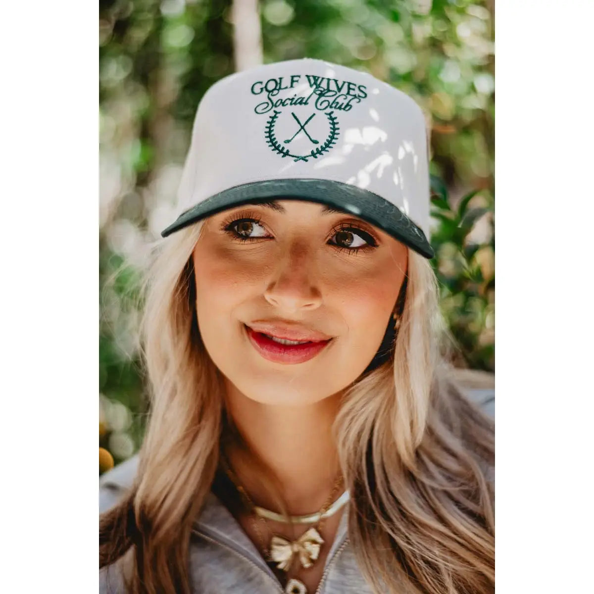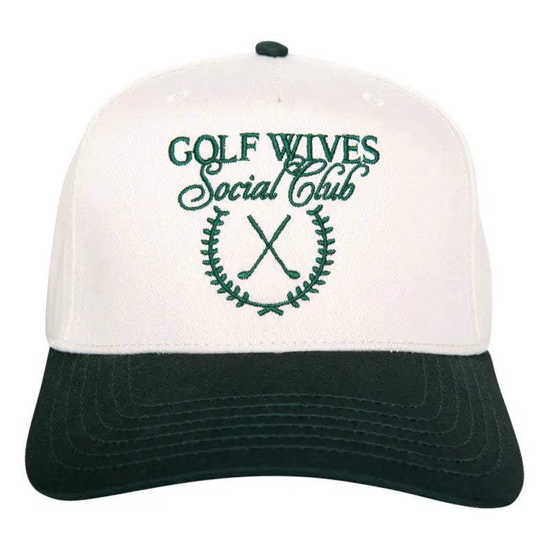Meet the Golf Wives Social Club Two-Toned Vintage Hat, the perfect accessory! With a neutral tan crown paired with a vibrant brim, this hat is equal parts trendy and functional. The bold embroidery brings a fun, social vibe to the design, making it an irresistible choice for golf-loving fashionistas. Crafted with an adjustable snapback for a perfect fit, this hat is ideal for sunny days on the course, casual brunches, or just hanging out in style. Whether you are a seasoned golfer or just along for the ride, this trucker hat adds the perfect finishing touch to any outfit.