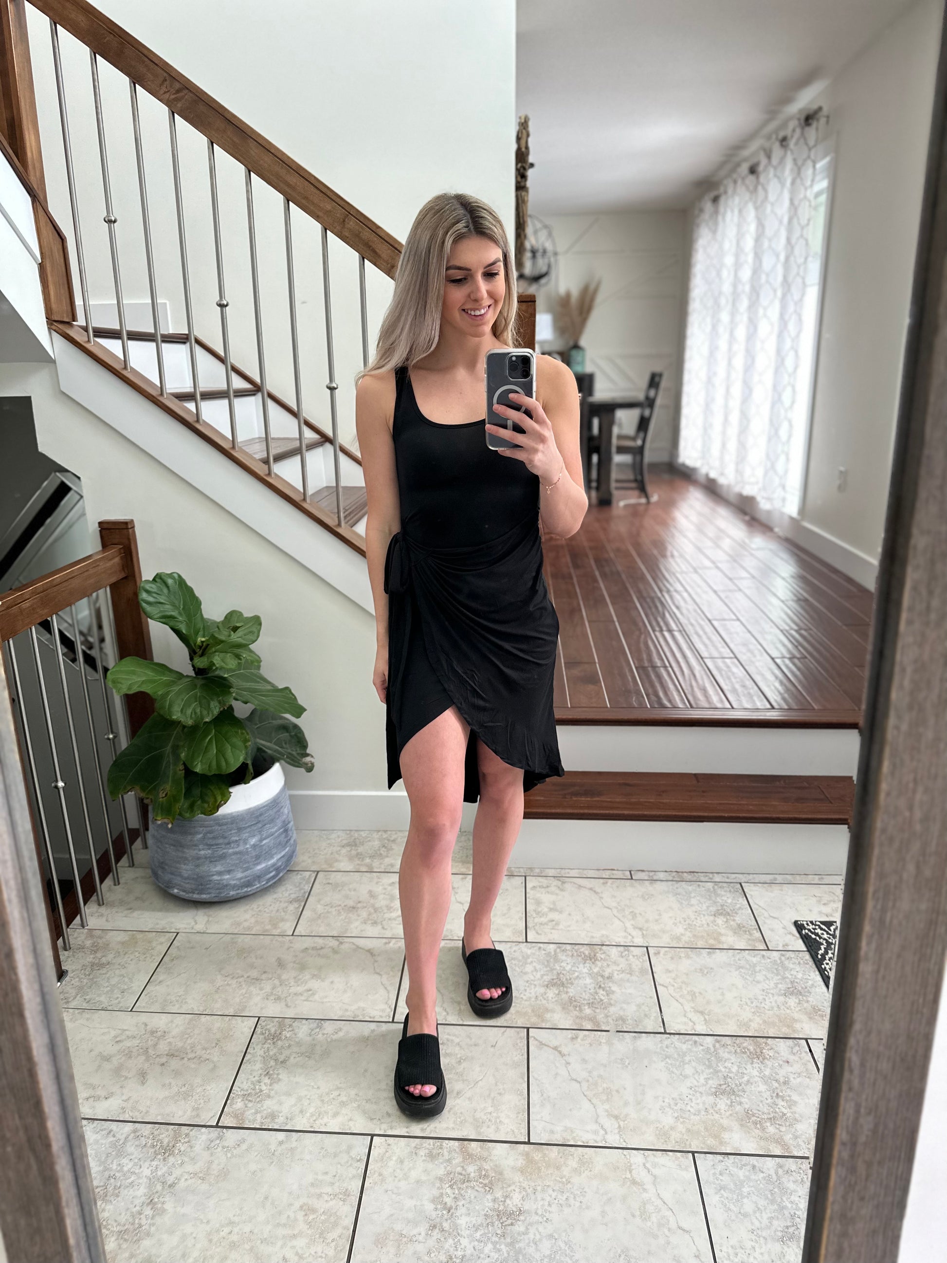 This midi dress is made from a super soft, high stretch jersey material that is beyond comfortable! The high percentage of spandex in this material make this dress perfect to wear all day long.